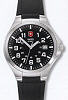 Swiss Army Lady wrist watch model 24126 from Swiss Army Base Camp Line. Stainless steel case with Swiss Quartz movement, black dial with Arabic numerals, luminous hands and markers and date calendar, black rubber watch band. Water resistant to 100 meters.