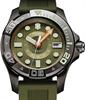 Swiss Army Dive Master 500 watch model 241560. Water resistant to 500 meters. Swiss quartz movement with date calendar, stainless steel case with black Gunmetal PVD coating, unidirectional 60 minutes bezel, screw-down crown and case back, sapphire crystal, green color dial with large luminous markers, green rubber watch band.