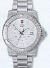 Swiss Army diver wrist watch model 24703 from Swiss Army Maverick II Line. Swiss Quartz movement, stainless steel case with steel unidirectional bezel, screw-down crown, sapphire crystal with date magnifier, luminous bezel marker, hands and markers on silver color dial with Arabic numerals, date calendar, stainless steel watch bracelet. Water resistant to 200 meters.