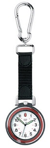 Swiss Army pocket watch that can be worn on the outside of the backpack, golf bag and etc...Swiss Quartz Analog movement( Battery powered ) Water resistant to 100m. Hard resin case with steel case insert and steel caseback.