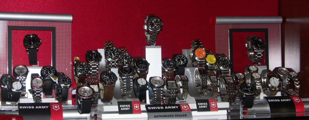Official Factory Authorized SWISS ARMY Dealer. Take a peek at Swiss Army window display in our showroom! All original factory warranties (3 years) apply!