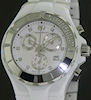 Technomarine all polished white ceramic model with ceramic case and bracelet. Swiss chrono quartz movement. White dial with diamond markers. Sapphire antireflective crystal. Highly polished bezel with .32ct tw diamonds. Rated 200m.