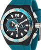 Technomarine Cruise Locker quartz chronograph watch. Steel 316L case with black gel cover, one-way rotating 0-60 bezel with blue accents, black color dial with blue sub-dial and luminous markers, blue watch strap. Water resistant to 200 meters.