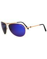 Lightweight pilot sunglasses, flexible and ready for your adventures. Technomarine Cruise Steel Collection. 100% UV Protection. Rose gold plated frame with blue lens and Technomarine logo.
