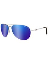 Lightweight pilot sunglasses, flexible and ready for your adventures. Technomarine Cruise Steel Collection. 100% UV Protection. Silver tone frame with blue lens and Technomarine logo.