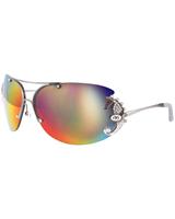 Lightweight sunglasses from Technomarine Hyppocampus Collection. 100% UV Protection. Silver tone frame with multi-color lens. Temples attached to lens by small "Sea Horse" decorated with Swarovski crystals.