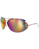 Lightweight sunglasses from Technomarine Hyppocampus Collection. 100% UV Protection. Rose gold tone frame with multi-color lens. Temples attached to lens by small "Sea Horse" decorated with Swarovski crystals.