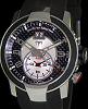 Technomarine UF6 dual time quartz watch model UFDT2 with large date calendar at 12 o`clock. Stainless steel case with black carbon inserts on sides and bezel. Black carbon fiber and steel color dial with second time zone sub-dial at 6 o`clock position. Black soft silicone watchband.