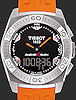 Tissot Racing-Touch Multi-Function wrist watch model T002.520.17.051.01. Stainless steel case, sapphire crystal, black dial with luminous hands and markers, orange rubber watch band. Watch functions operated by touch-sensitive screen which is activated by the crown. T-Touch functions: Tide schedule, Lap chronograph, Split chronograph, Compass, Alarm, Timer/countdown, Date and Time.