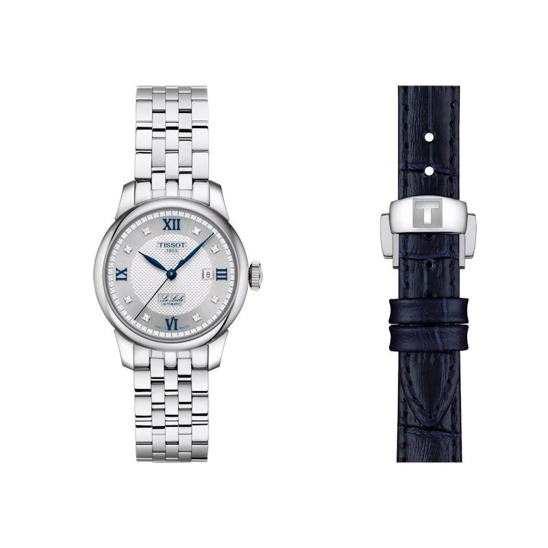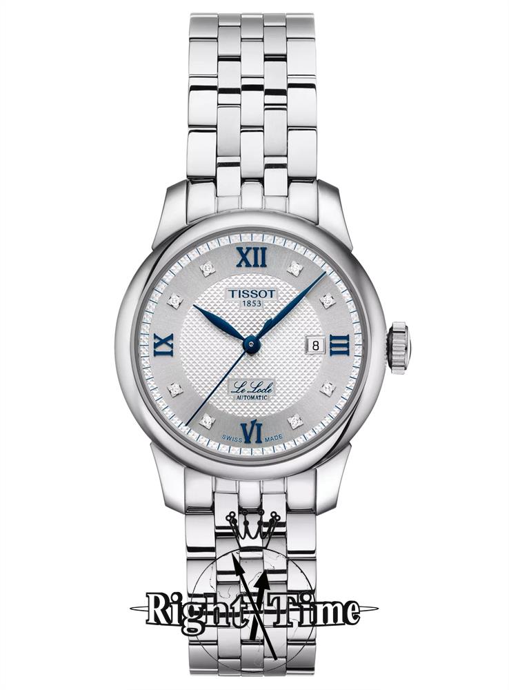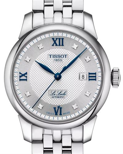 Tissot Le Locle ladies 20th anniversary model T006.207.11.036.01. Swiss made automatic movement. Solid stainless steel case and bracelet. Silver Roman dial with genuine diamond markers and blued hands. Sapphire crystal. Additional leather strap included.