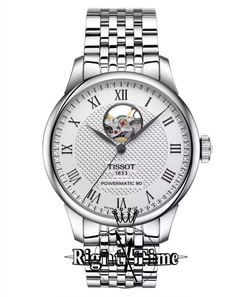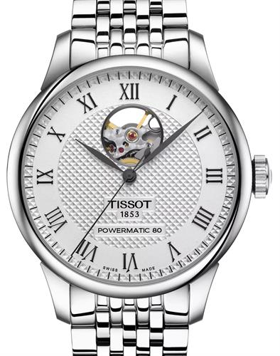 Tissot Le Loche model T006.407.11.033.02. Swiss made Tissot Powermatic automatic movement with 80 hour power reserve. Polished solid stainless steel case and bracelet. Silver dial with Roman numerals and open heart window. Sapphire crystal.