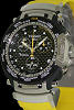 Black color. Carbon fiber. Tachymetre scale. Luminous hour markers/dots. Yellow color accents.