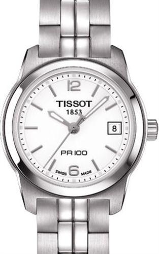 Tissot T049.210.11.017.00 Classic PR100 Lady quartz watch. White color dial with date. Round steel case with bracelet, sapphire crystal. Powered by Swiss ETA quartz movement