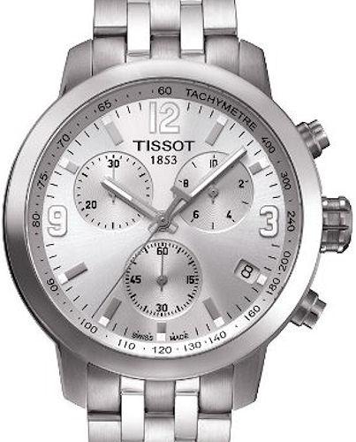 Tissot T-Sport PRC200 T055.417.11.037.00 quartz model. Stainless steel case with bracelet. ETA quartz chronograph movement. Silver color dial with date calendar. Sapphire crystal.