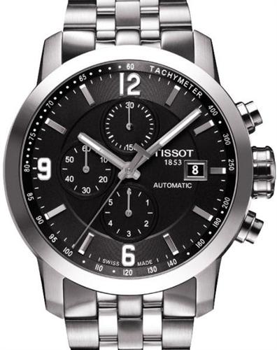 Tissot T-Sport PRC200 T055.427.11.057.00 automatic model. Stainless steel case with bracelet. ETA automatic chronograph movement. Black color dial with date calendar. Sapphire crystal. Water resistant to 200 meters.