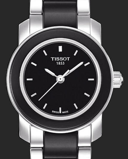 Tissot Cera Collection. Watch model T064.210.22.051.00. Black ceramic and stainless steel case with bracelet. Quartz movement. Black dial. Sapphire crystal.