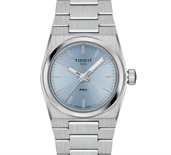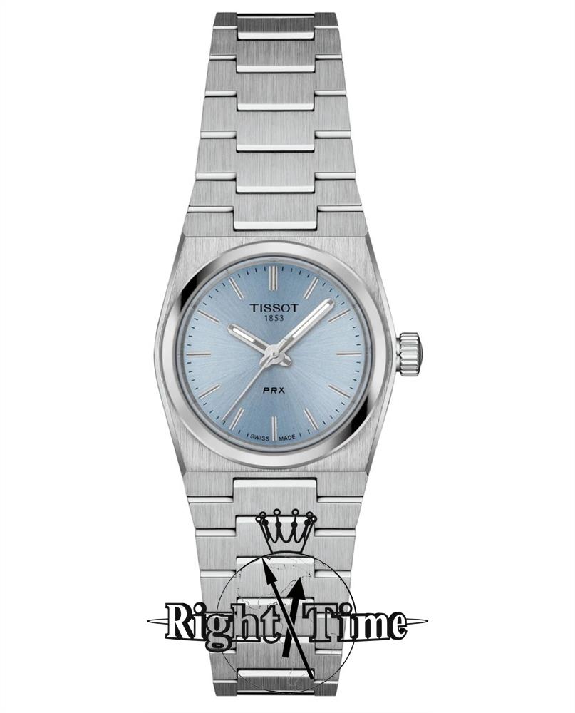 Tissot PRX model T137.010.11.351.00. Swiss made quartz movement. Solid stainless steel case and bracelet. Ice blue color dial. Sapphire crystal. Water resistant to 100 meters.