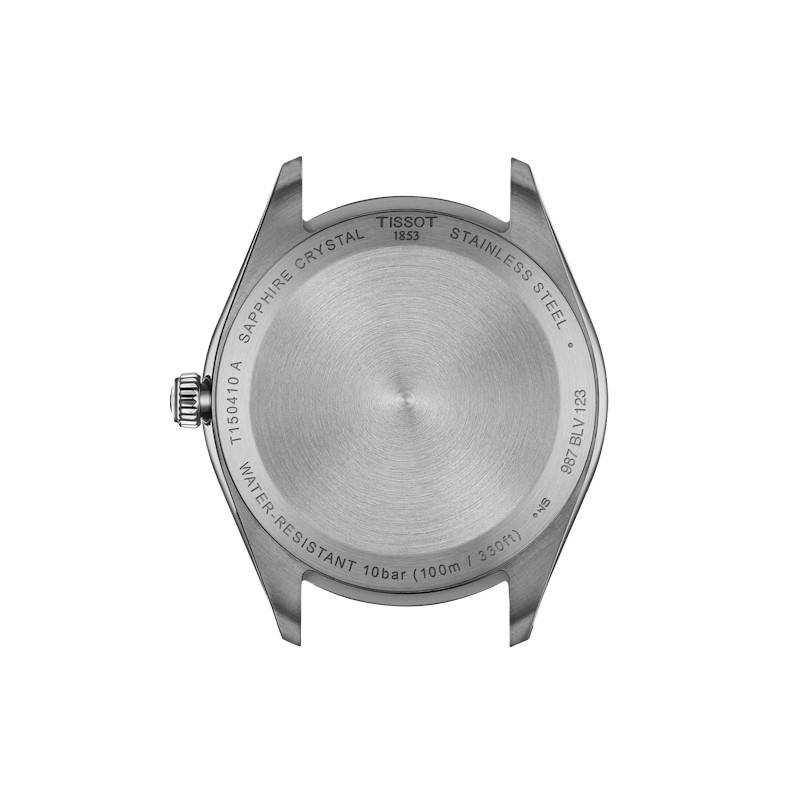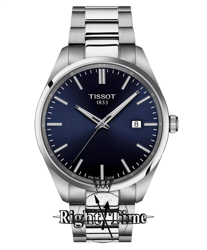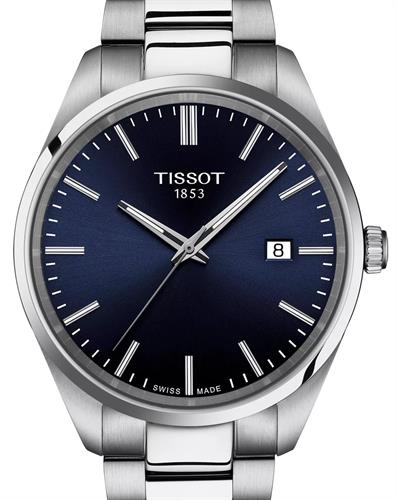 Tissot PR 100 model T150.410.11.041.00. Solid stainless steel case and bracelet. Blue dial with steel tone luminous hands and markers. Sapphire crystal. Swiss made quartz analog movement. Water resistant to 100 meters.