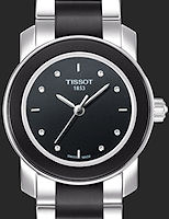 Tissot Cera Collection. Watch model T064.210.22.056.00. Black ceramic and stainless steel case with bracelet. Quartz movement. Black dial with diamond markers. Sapphire crystal.