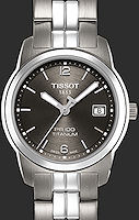 Tissot PRC 100 Titanium ladies size quartz watch model T008.010.44.261.00. Light weight, durable, none-allergic titanium case and watch bracelet. Gray color dial with date calendar. Sapphire crystal.100m water resistance