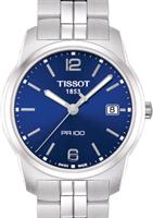 Tissot PR 100 model T150.417.11.041.00. Solid stainless steel case and bracelet. Blue dial with steel tone luminous hands and markers. Sapphire crystal. Swiss made quartz analog chronograph movement. Water resistant to 100 meters.