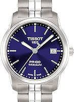 Tissot T049.310.44.041.00 Classic PR100 Titanium Lady quartz watch. Blue color dial with date. Round titanium case, sapphire crystal, titanium bracelet. Powered by Swiss ETA quartz movement