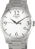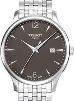 Tissot T063.610.11.067.00 Tradition Gent quartz watch. Grey color dial with date. Round stainless steel case, sapphire crystal, steel bracelet. Powered by Swiss ETA quartz movement