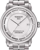 Tissot T086.408.11.031.00 T-Classic Luxury Automatic powered by Tissot Powermatic 80 movement with 80 hours power reserve. Silver color dial with date. Round stainless steel case, sapphire crystal, steel bracelet.