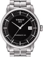 Tissot T086.407.11.051.00 T-Classic Luxury Automatic powered by Tissot Powermatic 80 movement with 80 hours power reserve. Black color dial with date. Round stainless steel case, sapphire crystal, steel bracelet.
