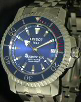 Tissot T19.1.583.41 1000 Automatic Diver Seastar. Slick blue dial with silver markers. Luminous tips on hands and markers allow for awesome underwater visibility. Unidirectional divers bezel. Spherically domed sapphire crystal. Elegant satin/highly polished finished stainless steel case and bracelet. Swiss ETA 2824-2 automatic movement.