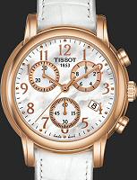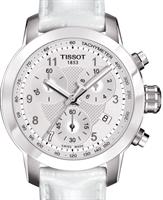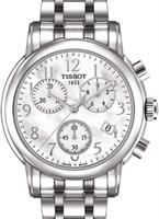 Tissot ladies quartz sport-dress chronograph model with white Mother-of-Pearl dial, diamond markers, 100m water resistance, polished stainless steel case and bracelet