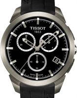 Tissot Titanium watch model T069.417.47.051.00 powered by quartz chronograph movement. Titanium case. Black dial. Black rubber band.