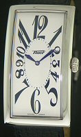 Tissot Classic Prince T56.1.622.72 quartz watch. this it the original "banana" watch. Very long, curved stainless steel case looks like a banana from the side. Art Deco numbers stretch out to the corners of the dial. Gorgeous blued hands. Very classic look.