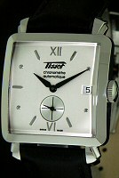 Tissot T66.1.829.33 Heritage 2005 Limited Edition chronometer certified by COSC. Swiss Automatic ETA 2895-1 movement. Limited to 3333 pieces. Dressy white dial curves toward corners. Intricate engraving on case back. Domed sapphire crystal. Small guilloche silver 60 second sub dial.