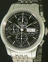 Tissot Le Locle Automatic chronograph model T41.1.387.51. Swiss ETA 7750 Valjoux automatic chronograph movement with 12 hour, 30 minute, and 60 second registers, and a day/date function. highly polished stainless steel case complimented by jet black dial and silver hands and markers. Sapphire crystal and observation back.