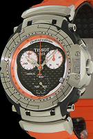 Tissot T-Race MOTOGP 2011 Limited Edition model T048.417.27.202.00. Quartz chronograph in stainless steel case with black bezel, black and orange carbon fober dial, orange rubber strap. 10 meters water resistant