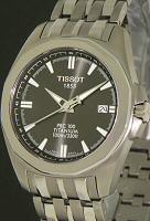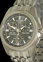 Tissot mens quartz sport-dress chronograph model with gray color dial, 100m water resistance, polished and satin finished titanium case and bracelet