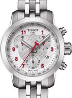 Tissot PRS330 T076.417.11.037.00 chronograph quartz watch. Stainless steel case. Silver color dial with date, luminous filled hands and markers. Sapphire crystal. Steel bracelet.