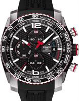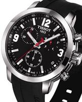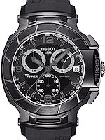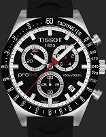Tissot T-Sport PRS516 quartz chronograph model T0444172705100. Black PVD coated bezel with tachymeter scale to delight all driving enthusiasts! Black color dial. Stainless steel case. Black rubber band. 100 meters water resistant