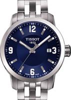 Tissot T-Sport PRC200 T014.410.11.047.00 quartz model. Stainless steel case with bracelet. ETA F06.111 quartz movement. Blue color dial with date calendar. Sapphire crystal. Water resistant to 200 meters