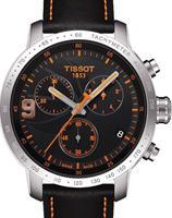 Tissot T-Sport PRS516 chronograph model T044.430.26.051.00. Swiss ETA 2836-2 movement with day/date calendar. Black PVD coated 0-60 bezel. Black color dial. Stainless steel case with black leather band. 100 meters water resistant