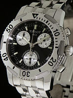 Tissot T-Sport PRS516 chronograph model T044.430.21.031.00. Swiss ETA 2836-2 movement with day/date calendar. Black PVD coated 0-60 bezel Silver color dial. Stainless steel case with steel bracelet. 100 meters water resistant