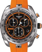 Tissot PRS 330 Tony Parker 2012 Limited Edition T076.417.17.057.01. Chronograph quartz watch. Stainless steel case. Black dial with orange accents. Sapphire crystal. Orange rubber band. Tony Parker`s number 9 and his signature are ingraved on the case back.