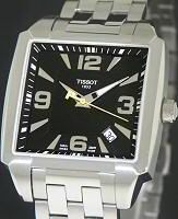 Tissot Quadrato stainless steel watch model T005.510.11.057.00 powered by quartz movement with date calendar. Rectangular case, black dial with texture. Yellow seconds hand. Stainless steel watch bracelet with center opening clasp and spring release. Water resistant to 100 meters