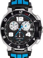 Tissot T-Race MOTOGP 2013 Limited Edition model T048.417.27.207.00. Quartz chronograph in stainless steel case with black bezel, black and blue carbon fober dial, blue rubber strap. 10 meters water resistant