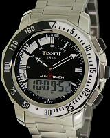 Tissot Sea-Touch Diver model T026.420.11.051.01. Features compass, thermometer, second time zone, alarm, stopwatch, dive assistant, and logbook. Solid stainless steel case and bezel. Sapphire crystal. Comes on a solid stainless steel bracelet with deployment clasp.