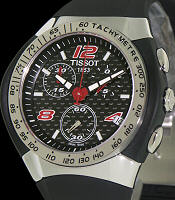 Tissot Sport T-Trax collection. Nascar Special Edition. Steel and black carbon case, rubber strap on steel deployant clasp. Black carbon fiber dial.