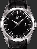 Tissot T-Trend Couturier (Gent Quartz) watch model T035.410.16.051.00. Swiss quartz movement. Stainless steel case. Sapphire crystal. Black dial. Black leather strap. Water resistant to 100 meters