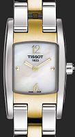 Tissot T-Trend T3 Ladies watch model T0421092211700. Quartz movement. Stainless steel case and bracelet with gold plated assents. White Mother-of-Pearl dial.