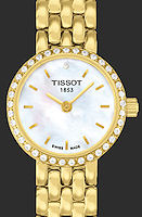 Tissot Diamond Dreams T-Round Ladies T64.1.785.81 quartz watch. 10 Top Wesselton square set diamonds (.17 carat) on the bezel. Gorgeous genuine mother-of-pearl dial. Unique bends and curves on case and band make this watch a beauty! Swiss quartz ETA movement and sapphire crystal.